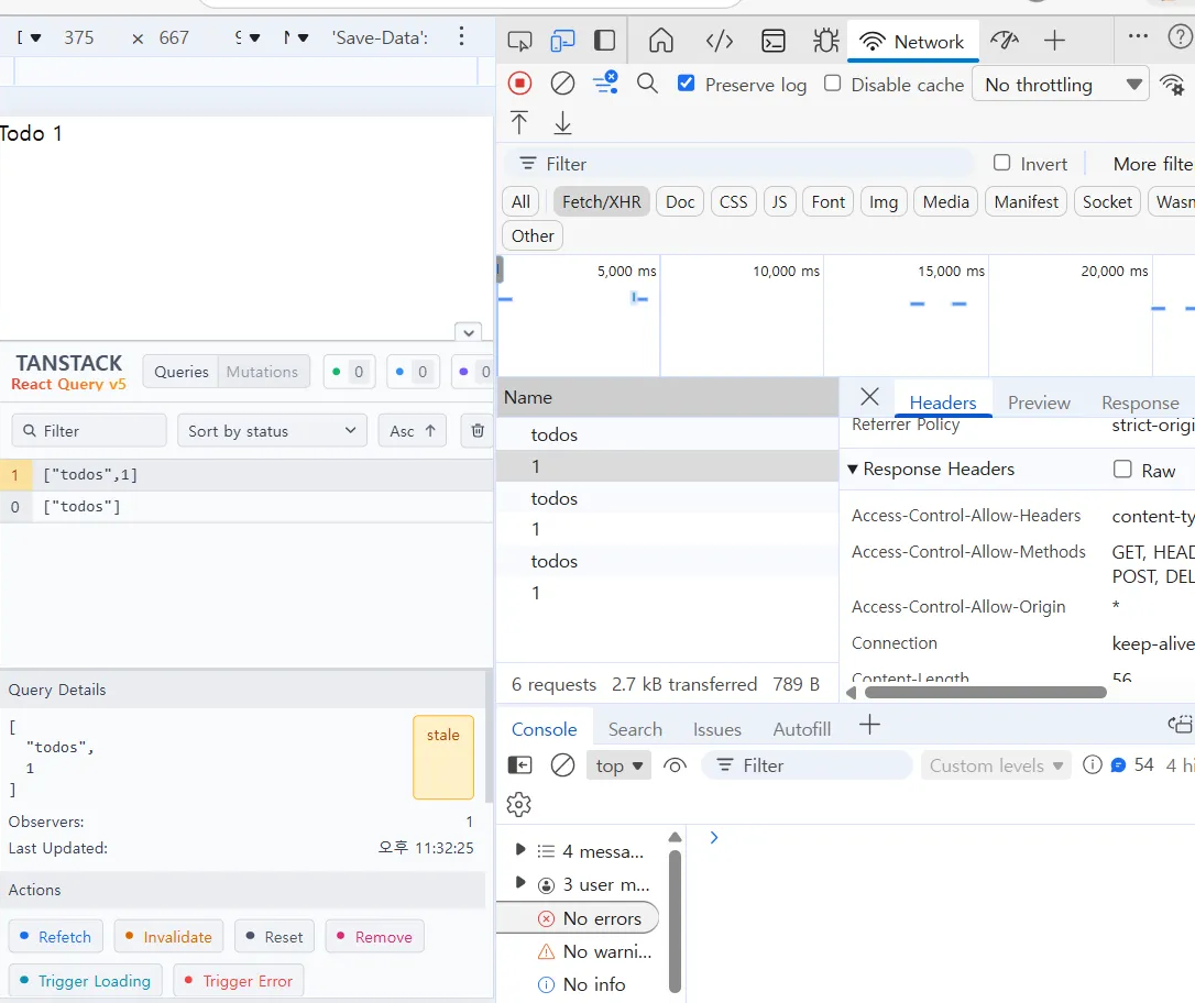 이를 통해 쿼리 상태(fresh / stale / inactive)를 실시간으로 확인할 수 있었다. 👀